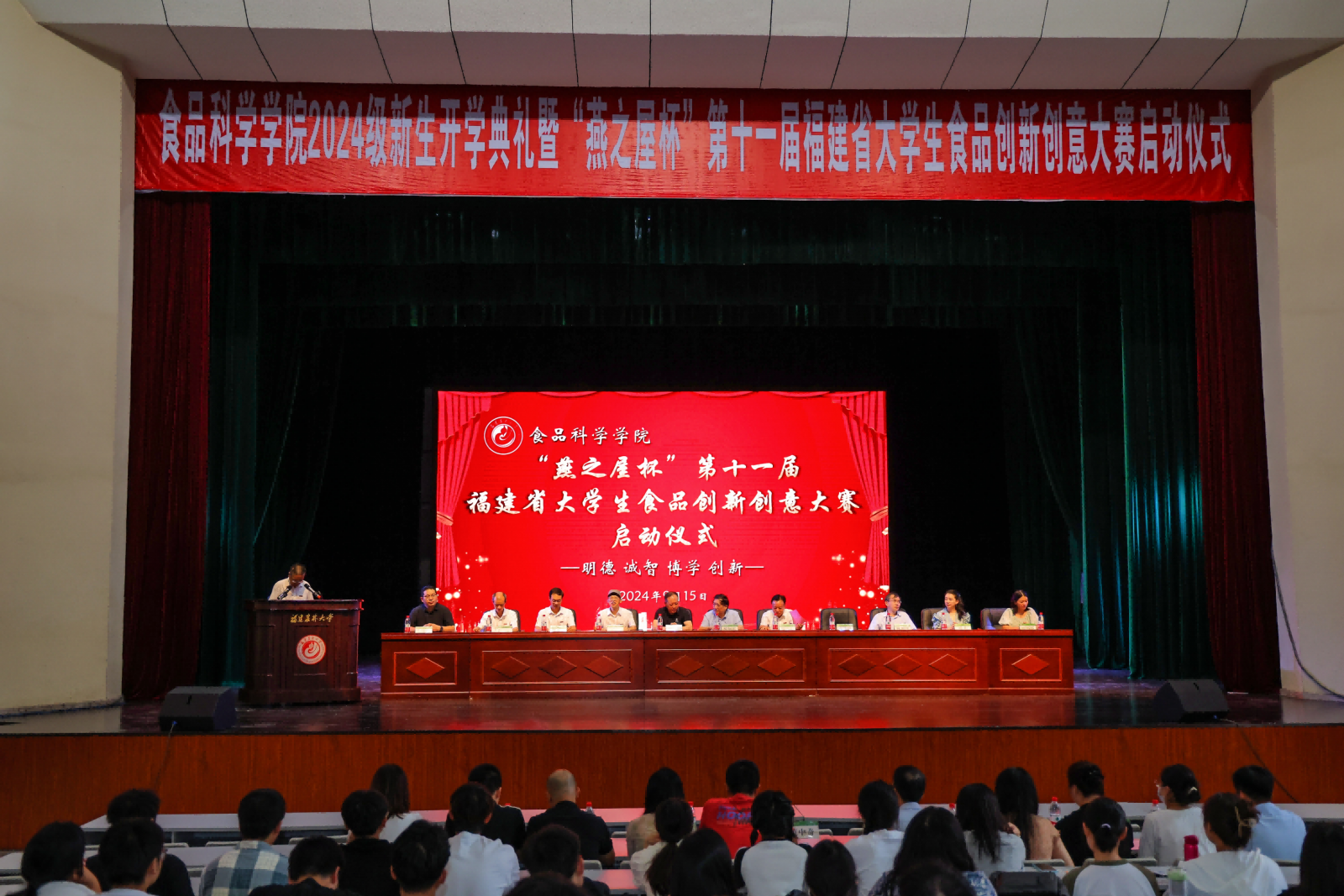 9月15日下午,以“‘燕’領(lǐng)健康潮,營養(yǎng)新‘食’代”為主題的“燕之屋杯”第十一屆福建省大學(xué)生食品創(chuàng)新創(chuàng)意大賽啟動(dòng)儀式在福建農(nóng)林大學(xué)舉行。福建省第十一屆政協(xié)副主席陳紹軍教授,福建農(nóng)林大學(xué)副校長鄭寶東教授,燕之屋創(chuàng)始人、董事長黃健,福建省食品加工與貯藏工程學(xué)會(huì)理事長及福建農(nóng)林大學(xué)食品科學(xué)學(xué)院黨政班子、參賽單位教師代表及學(xué)生近500人參加了啟動(dòng)儀式。啟動(dòng)儀式由食品科學(xué)學(xué)院黨委書記蘇健涵主持。