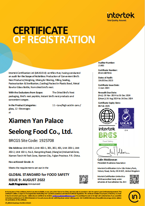 為了響應(yīng)美國(guó)官方的高標(biāo)準(zhǔn)要求,燕之屋分別通過了HACCP食品管理體系認(rèn)證、BRC全球食品安全標(biāo)準(zhǔn)認(rèn)證、IFS國(guó)際卓越標(biāo)準(zhǔn)認(rèn)證和食品出口備案資質(zhì),參加了美國(guó)FDA指定的由中國(guó)檢驗(yàn)檢疫科學(xué)院舉辦的BSPC培訓(xùn),并順利通過考核獲得出口資格,通過了FDA、FCE、SID注冊(cè)。此外,燕之屋更主動(dòng)將產(chǎn)品送至權(quán)威檢測(cè)機(jī)構(gòu)SGS,152項(xiàng)指標(biāo)檢測(cè)全部合格通過,印證燕之屋卓越產(chǎn)品力。2024年10月25日,燕之屋在廈門海關(guān)系統(tǒng)報(bào)檢通關(guān)。之后,燕之屋旗下高品質(zhì)燕窩產(chǎn)品冰糖官燕(60gx6、60gx12)、碗燕·禧孕款(80gx3)、碗燕·尊享款(158gx6)、碗燕·甄愛款(108gx6)、碗燕·濃鮮款(138gx10)通過美國(guó)食品藥品管理局(FDA)審批,順利運(yùn)抵紐約,正式上架開售,為當(dāng)?shù)叵M(fèi)者帶來來自中國(guó)的高端尊貴滋養(yǎng)。