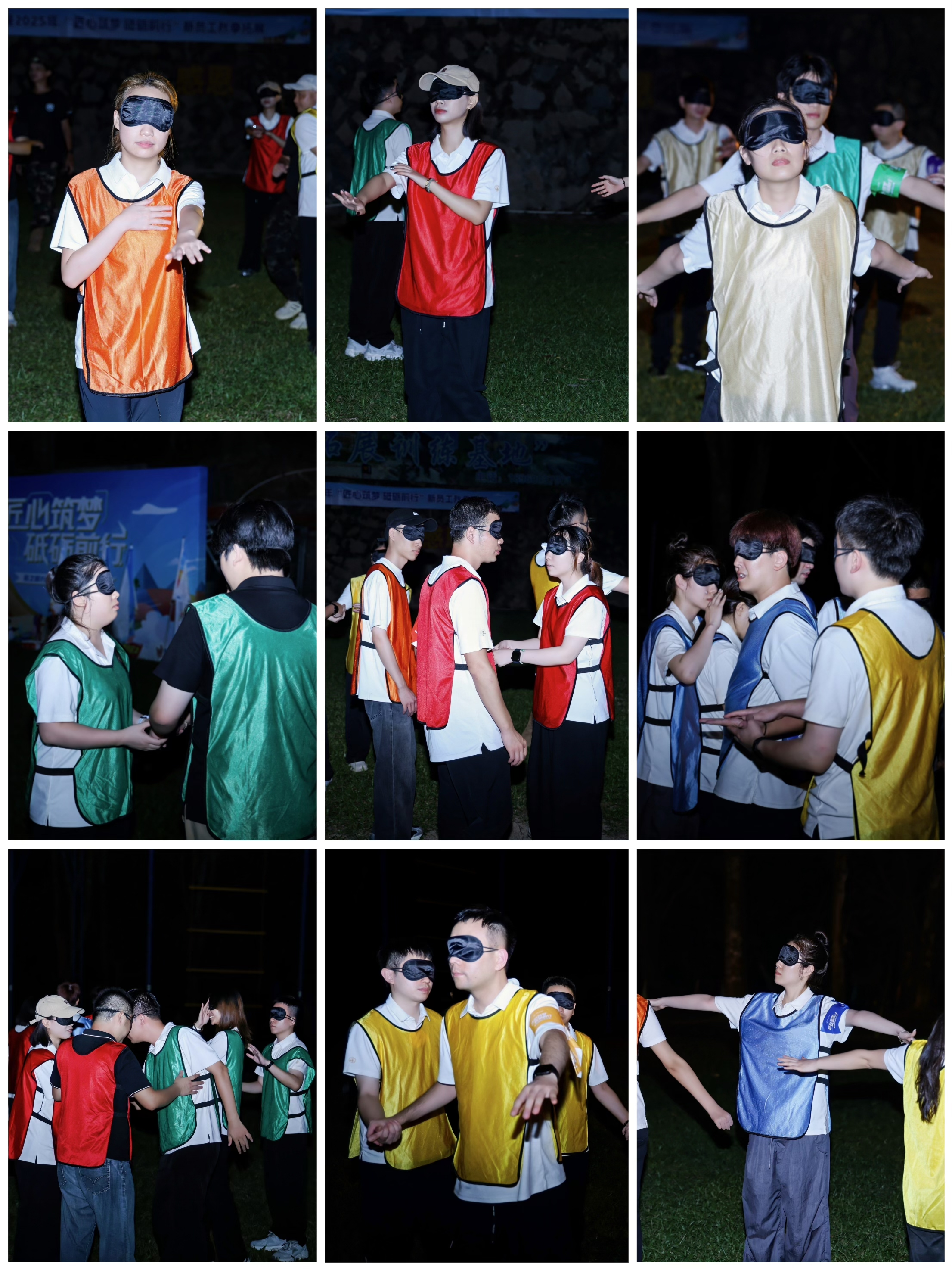 隨著夜幕降臨,“找回團(tuán)隊(duì)”項(xiàng)目將整場(chǎng)拓展推向新的高潮。隊(duì)員們被蒙住雙眼,在黑暗中尋找隊(duì)友,每當(dāng)遇到人的時(shí)候只能通過(guò)除語(yǔ)言外的其他方式及彼此默契來(lái)確認(rèn)是否是團(tuán)隊(duì)同伴。游戲過(guò)程中,已經(jīng)找回的隊(duì)友會(huì)被教官重新拆散,團(tuán)隊(duì)不僅需要再次找回成員,還需要緊緊守護(hù)隊(duì)友,堅(jiān)定彼此的選擇。那一刻,嘈雜的干擾聲遠(yuǎn)去,只留下對(duì)伙伴的信任指引方向。當(dāng)雙手終于相握,這份在困境中建立的羈絆,讓團(tuán)隊(duì)的凝聚力愈發(fā)堅(jiān)實(shí)。隨后的復(fù)盤(pán)會(huì)上,隊(duì)員們圍坐分享收獲、梳理經(jīng)驗(yàn),再一次體會(huì)到團(tuán)隊(duì)信任與凝聚的力量。